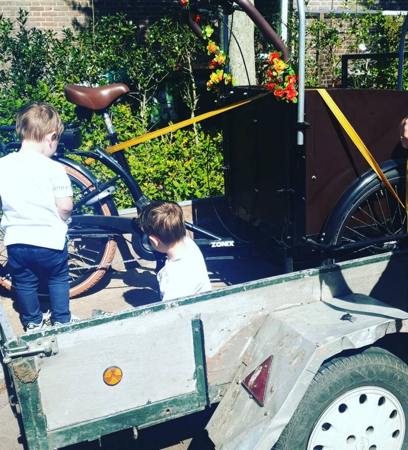 Toen we eindelijk thuis waren zijn we er gelijk mee op pad gegaan, langs de opa's en oma's, het was al te laat om langs alle opa's en oma's te gaan dus dat doen we zeker van de week of volgend weekend, met een elektrische fiets is een langere afstand ook te doen dus kom maar op met de kilometers! Tijdens het showen van de bakfiets zijn we nog even blijven plakken bij een opa en oma en hebben we daar, ja op veilige afstand wat gegeten en kwam er nog een heuse ijsboer met muziek en alles erop en eraan, wat een feest en een mooi moment om de dag mee af te sluiten. Ik moet nog wel even oefenen op de fiets, want een bakfiets is toch wel even wat anders dan een gewone fiets en zeker wanneer je kids erin zitten. Morgen dus maar eens een rondje erop weg, aangezien ik nog lekker een dag vrij ben! Ik kan niet wachten om er veel kilometers mee te gaan maken!