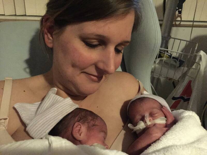 Inmiddels had ik een katheter en ik weet nog heel goed dat ik zei 'ok voordat we naar de OK gaan, moet ik echt nog heel even plassen' iets wat natuurlijk helemaal niet kan met een katheter. De gynaecoloog vertelde mij toen dat ik rustig aan moest doen, want dit waren persweeën. Mijn man was gelukkig gearriveerd en we konden op naar de OK. Normaal gezien worden kindjes onder de 32 weken niet in een perifeer ziekenhuis gehaald, maar 1 ding was zeker Rotterdam of een ander ziekenhuis ging ik niet meer redden, dus werd er een team van de NICU gebeld om naar het ziekenhuis te komen en de kindjes samen met de neonatoloog van hier op te vangen. Eenmaal op de OK viel mij gelijk op dat het heel druk was, 2 teams, 1 voor ieder kindje, het standaard OK team en natuurlijk de gynaecoloog en mijn man. Ik zag behoorlijk op tegen de ruggenprik, maar door de anesthesist ben ik zo enorm op mijn gemak gesteld, dat ik er zo goed als niets van gevoeld heb.